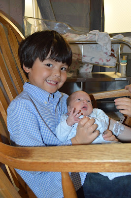 Once we got the babies moved to the hospital in our town I wanted the big boys to get to come for a visit. Over the course of the babies' hospital stays James and Harrison came several times but it was not the easiest place for a 2 and 5 year old to be. One of the best things about this hospital was that the babies were in the same room. This meant when James and Harrison came with me this day it was the first time that I got to be with all four kids together! It was chaotic but so special!!!